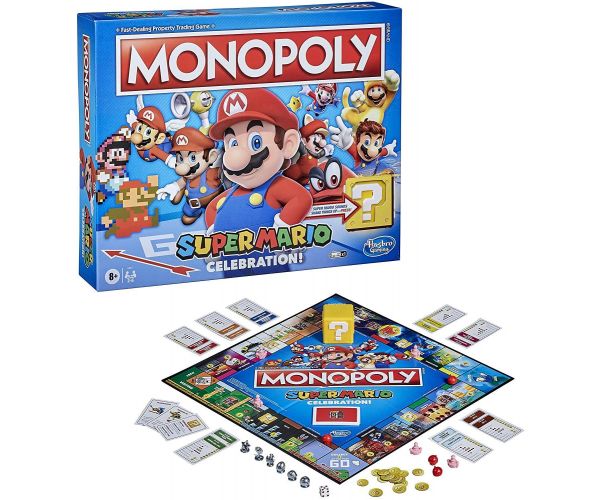 The Super Mario Celebration edition of the Monopoly game offers action-packed excitement along with nostalgia. Choose from 6 tokens designed with the Super Mario enthusiast in mind, and buy, sell, and trade locations from iconic Super Mario games.